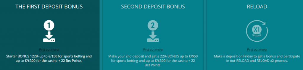Well, 22Bet doesn’t really offer many bonuses. But the few bonuses that it does offer are enough to keep you steady. So, the first one is the welcome deposit match bonus. It’s rather unique in the fact that it offers a 122% increase of your deposit. The maximum reach of this bonus is a lot bigger in the 22Bet casino though. For the casino, you can get up to $300. For the sports betting platform – you can get $130. This is a nice bonus in the industry that should let you double check this website.