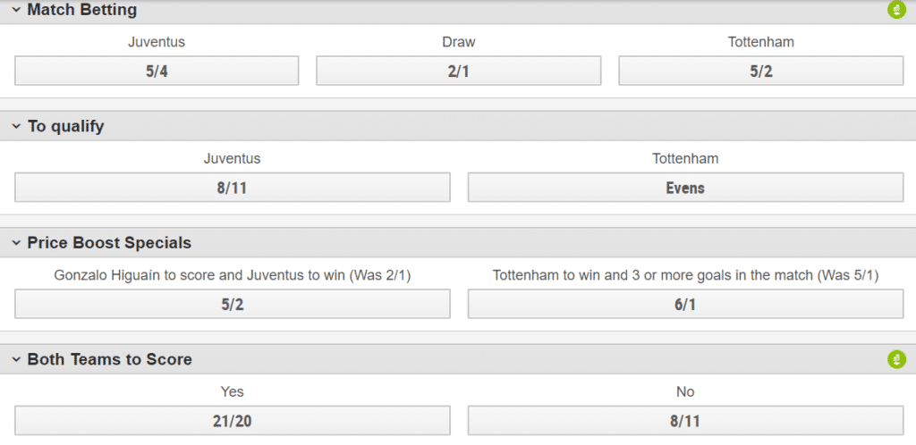 - Both teams to score: the name says it all really, both teams need to score for this outcome to be true;