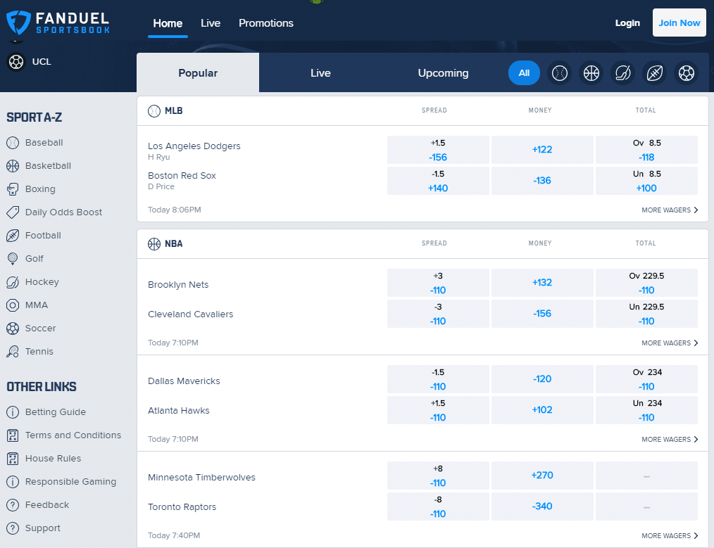Aside from the fantasy sports betting that FanDuel was originally known for, there are a handful of other sports that it supports now. So, you can bet on football, baseball, basketball, tennis, MMA, boxing, golf, and hockey. Truth be told, this selection of sports is far from being impressive. To that end, we hope that the FanDuel owners will invest in further developing their sportsbook.